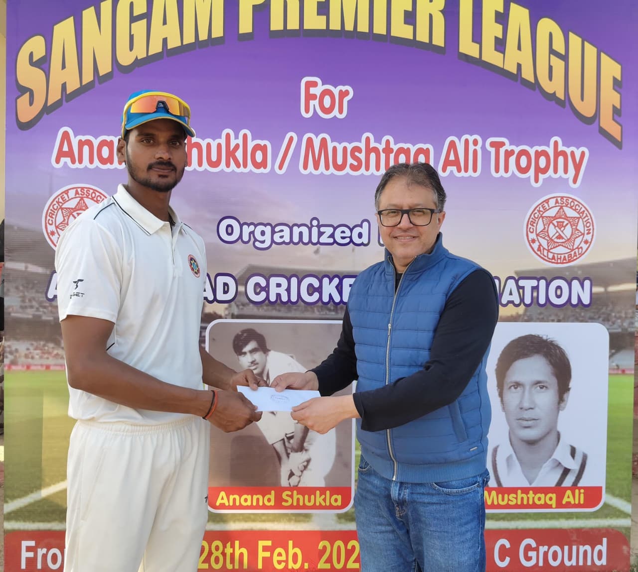 Prayagraj: Justice S.N. Dwivedi XI defeated Justice Yashoda Nandan XI by 58 runs to win the inaugural match of the Sangam Premier League organized for the Anand Shukla Mushtaq Ali Trophy. In the tournament that commenced on Wednesday at K.P. College Ground, Justice S.N. Dwivedi XI won the toss and scored 269 runs for 9 wickets in 40 overs. Rahul Rajpal top-scored with 75 runs, while Tejas Mishra scored 39 runs. Sachin Tiwari and Krishna Sahu contributed 26 runs each, Devansh Pathak scored 24, and Sumit Agarwal added 23 runs. For Justice Yashoda Nandan XI, Akhil Kumar Kashyap took 3 wickets for 45 runs, Badal Kumar claimed 2 for 25, while Rudraksh Yadav, Akhilesh Yadav, and Vidhyansh picked up one wicket each.