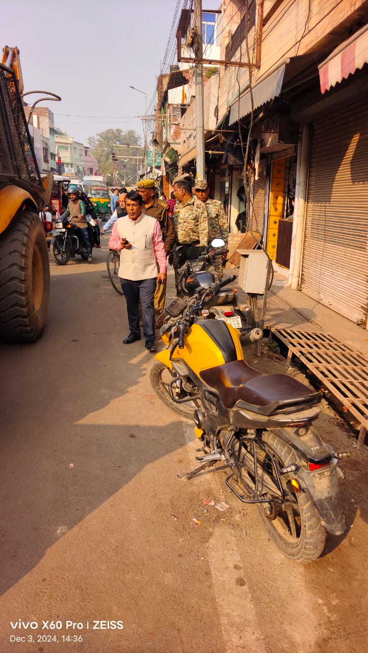 Prayagraj: Under the direction of Zonal Officer Khuldabad, anti-encroachment campaign was carried out from Khuldabad intersection to Karela Bagh Power House on Nurullah Road along with security forces. In the encroachment campaign, one dozen Gomti and half a dozen tin shuttles and 8 kg of banned polythene and Rs 4200 fine were collected. Zonal Officer Ashok Kumar told that this campaign will continue from time to time. Whoever violates the law and encroaches, double the amount of future connection will be recovered from him.