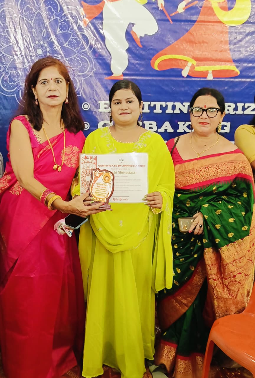 Senior most member Leena Varshney distributed prizes to the winners announced by jury. Garba King- Manish Yadav, Garba Queen -Nishi ,Best dancer Ashwin Singh . She prayed to Goddess Durga for strength, courage and determination to good work, and above all, to remain healthy. Good health is true wealth she said and added that pooja is not just about celebrations it is also about doing good deeds for our society.She blessed the winners and paid thanks to all the members and organisers.