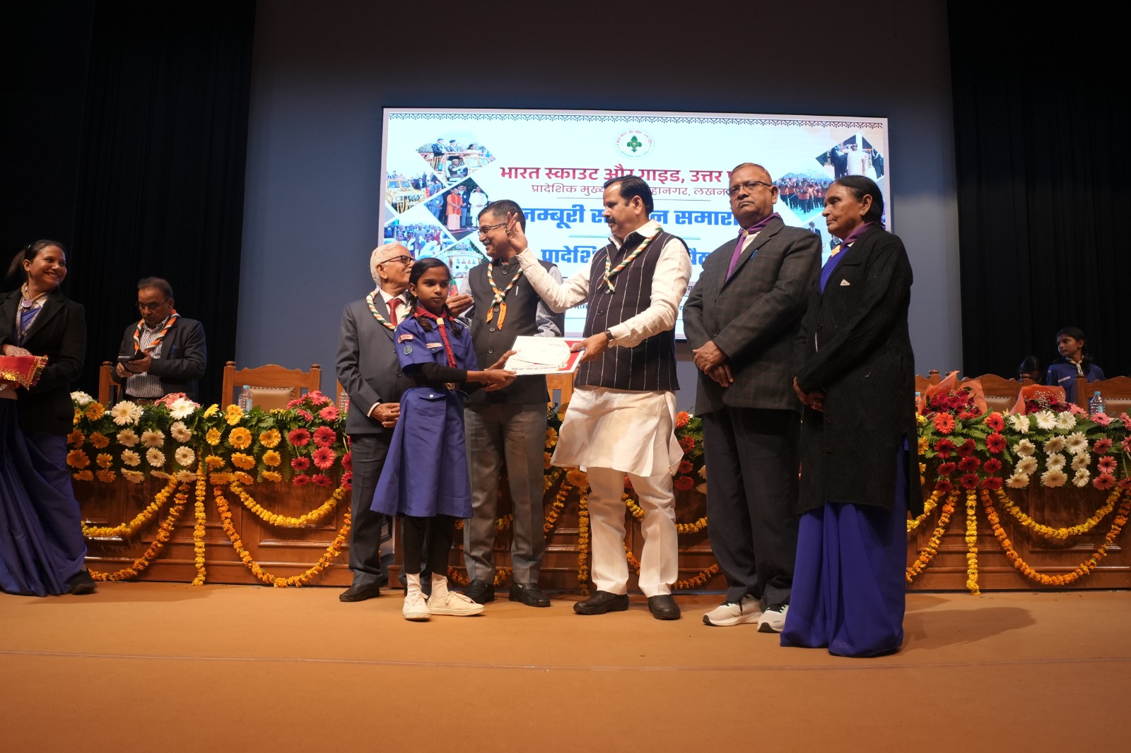 Prayagraj: The State Council meeting of the Bharat Scouts and Guides, Uttar Pradesh, was held at Babasaheb Bhimrao Ambedkar University, Lucknow, on February 14th, in the presence of Dr. Prabhat Kumar, State Chief Commissioner, and chaired by State President Dr. Mahendra Singh. Officials who performed outstandingly at the 19th National Jamboree were honored. District School Inspector/District Chief Commissioner, Prayagraj, P.N. Singh, and District Secretary, Dr. P.P. Singh, were honored for their outstanding performance at the Jamboree from Prayagraj district. District Secretary, Dr. P.P. Singh, representing District Chief Commissioner P.N. Singh, received a certificate of honor and a Shardul. Piyush Kumar Singh, A.L.T. Scout Assistant District Secretary, participated in the State Council meeting as a representative of District Commissioner Scout, District Basic Education Officer, Prayagraj, Anil Kumar. During the program, a short film based on the Jamboree’s achievements was presented, and the contributions of various departments, media, and supporting organizations were appreciated. On this occasion, teachers Anil Shukla and Surendra Pratap Singh of Prayagraj who completed the HWB course were presented with parchment and honorable charge and as a prize in the BSG knowledge competition, Anshuman from Cub section and Reshu Kushwaha from Bulbul section were presented with a cheque of Rs. 1000 each. Assistant Regional Organization Commissioner Prayagraj Division Prayagraj Sundaram Shukla was present on this occasion. On the high-quality performance of Prayagraj district in the Jamboree, District Chief Commissioner/District School Inspector P.N. Singh, District Commissioner Scout/District Basic Education Officer Anil Kumar, District Commissioner (Cub) Virendra Kanaujia, District Commissioner Guide Dr. Sarita Verma, Headquarters Commissioner Dr. Santosh Singh, Commissioner Resource Dr. Dilip Awasthi and District Training Commissioner/DSM Firoz Alam Khan congratulated and wished all the Jamboree participating Scout Guides, Unit Leaders and concerned Principals for the honour received by the district.