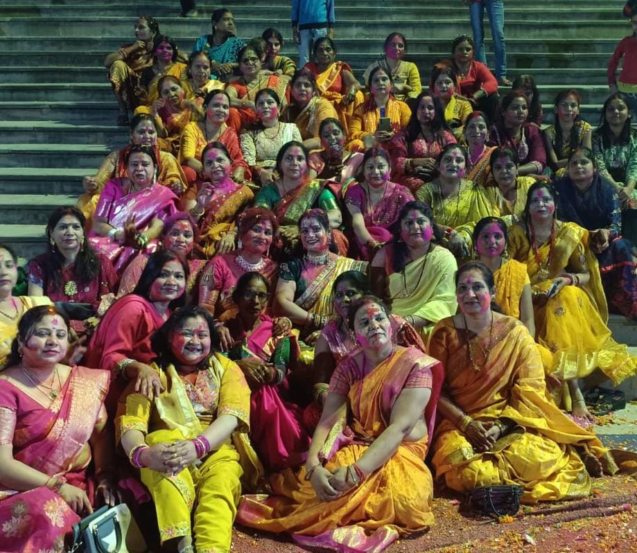Prayagraj: Holi festival was organised by women in coordination with social worker Mrs. Sujata at Bargad Ghat Meerapur. On this occasion, cultural Holi evening was organised and Holi of colourful flowers was played. On this occasion, hundreds of women including Kanchan Maurya, Rita Singh, Meenu Singh, Sanjana Chaurasia, Amita Shukla, Poonam Chaurasia, Sunita Yadav, Abha Sahu, Manju Kanaujia, Sunita Saroj, Savitri Chaurasia, etc. sang Holi songs and enjoyed Holi.