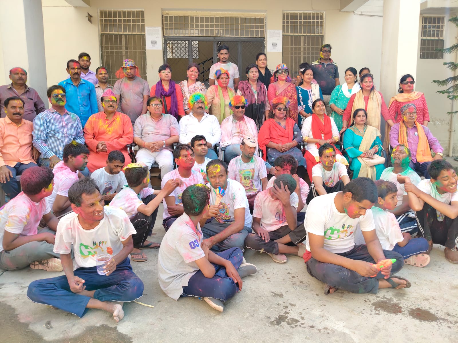 Prayagraj: The purpose of playing Holi in Mamta Vidyalaya was to share happiness among the neglected and special children of the society and to give them the message that they are an integral part of the society. Like every year, this year also, Lok Sevak Mandal and Anaam Sneh Parivar presented a wonderful example of humanity and service by reaching Government Mamta Vidyalaya and celebrated the holy festival of colours, Holi, with great joy with mentally retarded orphan children. During the program, children were distributed gujiyas, samosas, mathris, namkeen, and fresh fruit. The joyous smiles on their faces were palpable. Shrinarayan Yadav, the coordinator of Anaam Sneh, along with his officials, played Holi with the children, applying abir and gulal, and made them feel a sense of belonging. The children were gifted water guns, masks, T-shirts, and Holi caps, and they were thrilled to receive them. The children and officials danced together to the melodious tunes of the DJ, filling the entire school campus with joy and enthusiasm.