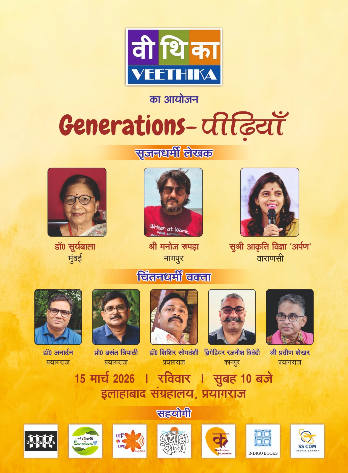 Prayagraj: The unique literary event ‘Peedhiyan’ of Vithika Sanstha will be held on 15th March from 10 am onwards at Allahabad National Museum. The country’s leading literary figures and critics will participate in this programme focusing on three generations of Hindi literature. These include famous story writer Suryabala (Mumbai), well-known novelist and story writer Manoj Roopda (Nagpur) and young poetess Akriti Vigya Arpan (Varanasi). All these writers will discuss their creations and creative process. Prof. Basant Tripathi, Dr. Janardan, Dr. Shishir Somvanshi and Brigadier Rajneesh Trivedi (Kanpur) will be present to discuss the works of these writers.