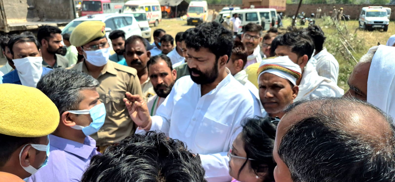 Prayagraj: A major tragedy occurred due to ammonia gas leakage in the cold storage located at Chandapur Mauhariya under Phaphamau police station area and a part of the building being razed to the ground. As soon as the news of the accident was received, Congress Gangapar District President Ashfaq Ahmed reached the spot along with his workers and took stock of the situation and immediately met the Shoka family of deceased Jagdish Harijan and consoled them and also met the wife, children and parents of deceased Jagdish and assured them of all possible help. On this occasion, the Congress District President arranged a telephone conversation between State President Ajay Rai and the mother of deceased Jagdish. The State President assured all possible cooperation and impartial investigation and the Congress Party stands strongly with the family of the deceasedIn the same sequence, Congress District President Ashfaq Ahmed met the DM of Prayagraj and demanded immediate financial assistance of Rs 50 lakh to the family of the deceased and a government job to one person in the family on the basis of merit and demanded financial assistance of Rs 10 lakh to the laborers injured in the incidentOn this occasion, Assembly in-charge Manju Maurya, District General Secretary Sunil Pandey, Vinod Tiwari, Dr. Amar Singh Patel, Warroom in-charge Saddam Hussain Siddiqui, Block President Ritesh Pasi, Ramesh Maurya, Anil Pal, Shiv Prasad Maurya, Shiv Murat Vishwakarma, Shishir Gautam, Ansar Ali Sonu, Mohd. Farooq etc. were present