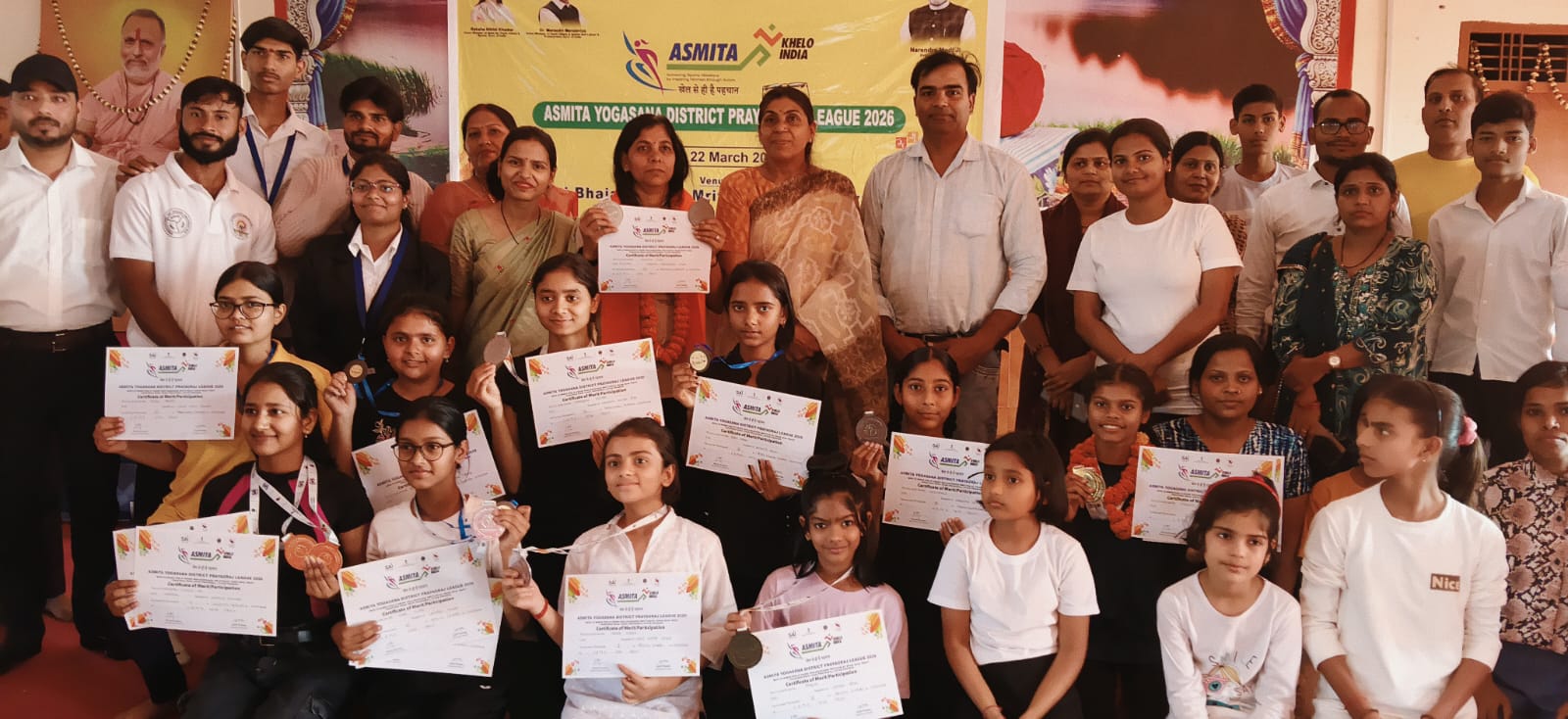 Prayagraj: Smita Yogasana City League competition was organized at Swami Bhajanananda Mrityunjay Dham Seva Trust, Chhatnag Road, Jhusi Prayagraj. This competition was organized in collaboration with Sports Authority of India (SAI) and Uttar Pradesh Yogasana Sports Association. The competition was inaugurated by Mrityunjay Dham Seva Trust Secretary Manish Kapoor and Competition Director Jyoti Pandey started the match by cutting the ribbon. Competition Manager Yogacharya Dr Prashant Tiwari said that the competition was organized in two age groups, the first category was from 10 to 18 years and the second was from 18 to 55 years. In the traditional yoga competition in the 10 to 18 years age group, Anshika Sharma got first place, Aashri Tiwari second, Shivangi third, fourth, Khyaati Pandey and Ruby got fifth place. In the artistic yogasana competition, Anushka Sharma got first place, Anya second, Pragun third, and Asvi got fourth place. In the traditional yoga competition in the 18 to 55 age group, Anjali Pal got first place, Mandakini second, Sangeeta Singh third, fourth, Aastha Tiwari, and Anjali Pandey secured the fifth position. In the artistic yogasana competition for the age group of 18 to 55, Anjali Pal secured the first position and Sangeeta Singh secured the second position. Professor Archana Chal of the Physical Education Department of Allahabad University was the chief guest for the closing ceremony. The chief guest honoured all the winners and runners-up by giving them certificates and medals. Judges of the competition, Sakshi Tripathi, Rajesh Bhagat, Sandeep Singh, Ajay, Harshit Mishra, Rinki Nishad, Anushka, Shivam, Archana Mishra etc. were present.