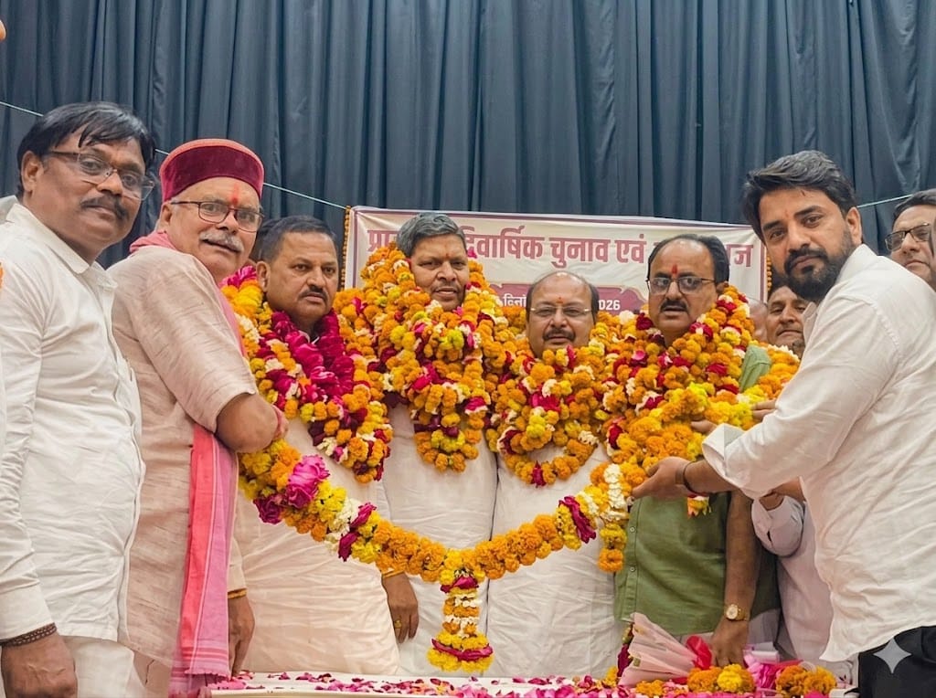 On this occasion, Prayagraj division president Ravi Shankar Mishra, division minister Dharamraj Yadav, Manoj Kumar Saini (district president Fatehpur), Phoolchand Yadav (district president Prayagraj), Ram Singh (district president Kaushambi), Ram Achal Pal (district minister Prayagraj), Pramod Mishra (Pratapgarh), Beni Prasad Maurya (Kaushambi) and division treasurer Rampratap Yadav along with other officials congratulated and wished the newly elected officials by garlanding them with a grand 51 kg garland.